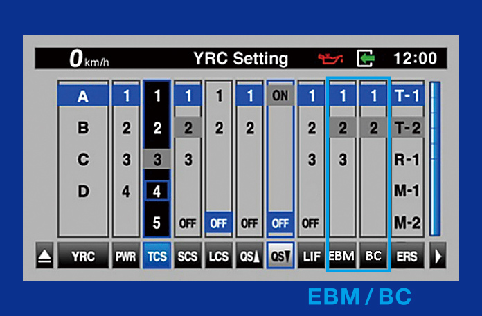 スポーツライディングの醍醐味であり、難しさでもある、ブレーキング。ライダーの好みや技量に応じてよりきめ細やかにブレーキ特性を設定できるよう、2系統の制御システムを搭載している。BC(ブレーキコントロール)は、ブレーキ圧力を制御することで最適なブレーキングを実現。EBM(エンジンブレーキマネージメント)は走りに大きく影響するエンジンブレーキを的確に制御する。BCとEBMは相互に連動し、自然なフィーリングでブレーキングをサポートする。