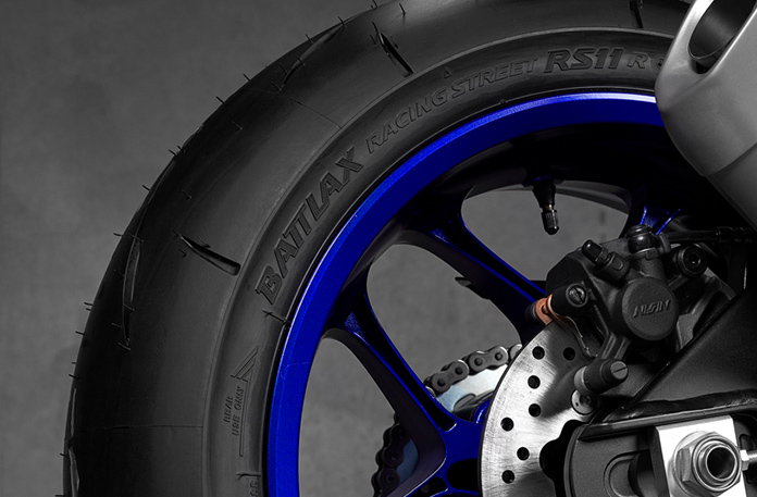 ライダーのレバー操作にリニアに反応するブレーキングを実現するために、コントロール性に優れた摩擦材のフロントブレーキパッドを装備している。また、YZF-R1のハンドリング特性に最適化したブリヂストン製タイヤを装着。高いトレッド剛性を発揮するパターンと、コンパウンドの調整により、YZF-R1の優れた操縦性をひときわ高めている。