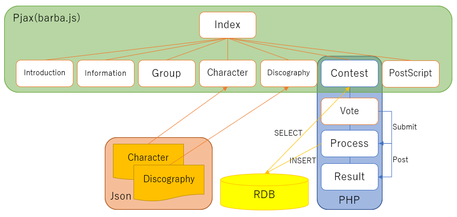 そもそも折角DB立ててるのに、CharacterとDiscographyはJsonからデータ引っ張ってきてるの今更ですがかなり阿呆です。