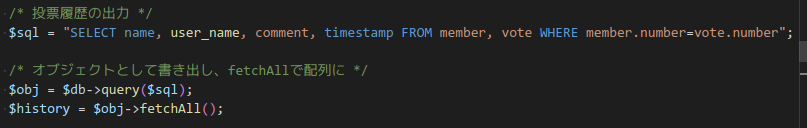また、CharacterページのPHPが投票履歴のDBを全部fetchする一行があるので、