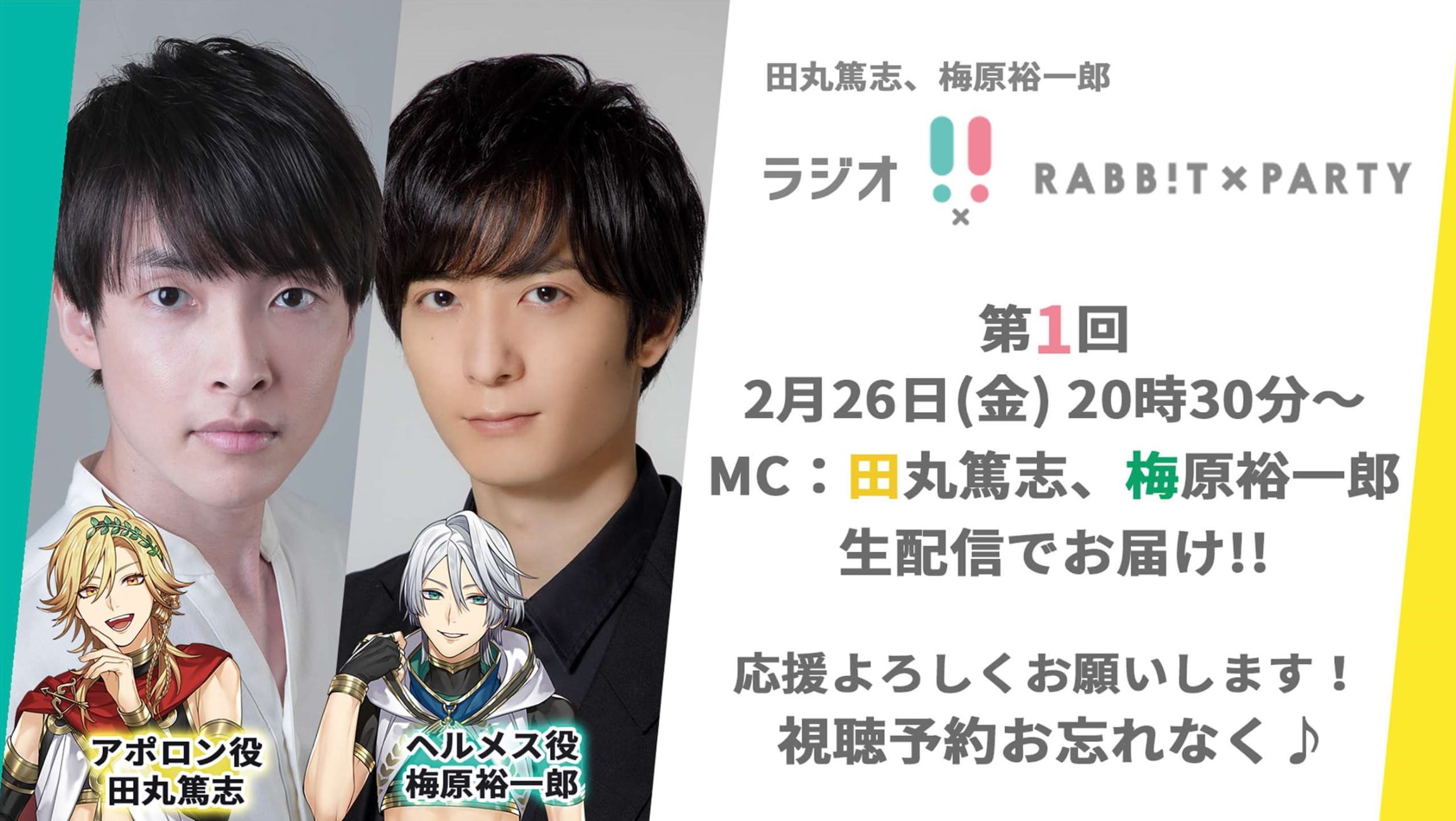 ニコニコ動画でrabbit×partyのラジオを月に一度、毎週日曜日午後9時にひょろっと男子というラジオ番組を行っています。彼は、ラジオの雰囲気に合わせて少し立ち回りを変えているのでラジオによって違った一面を見ることができます。
